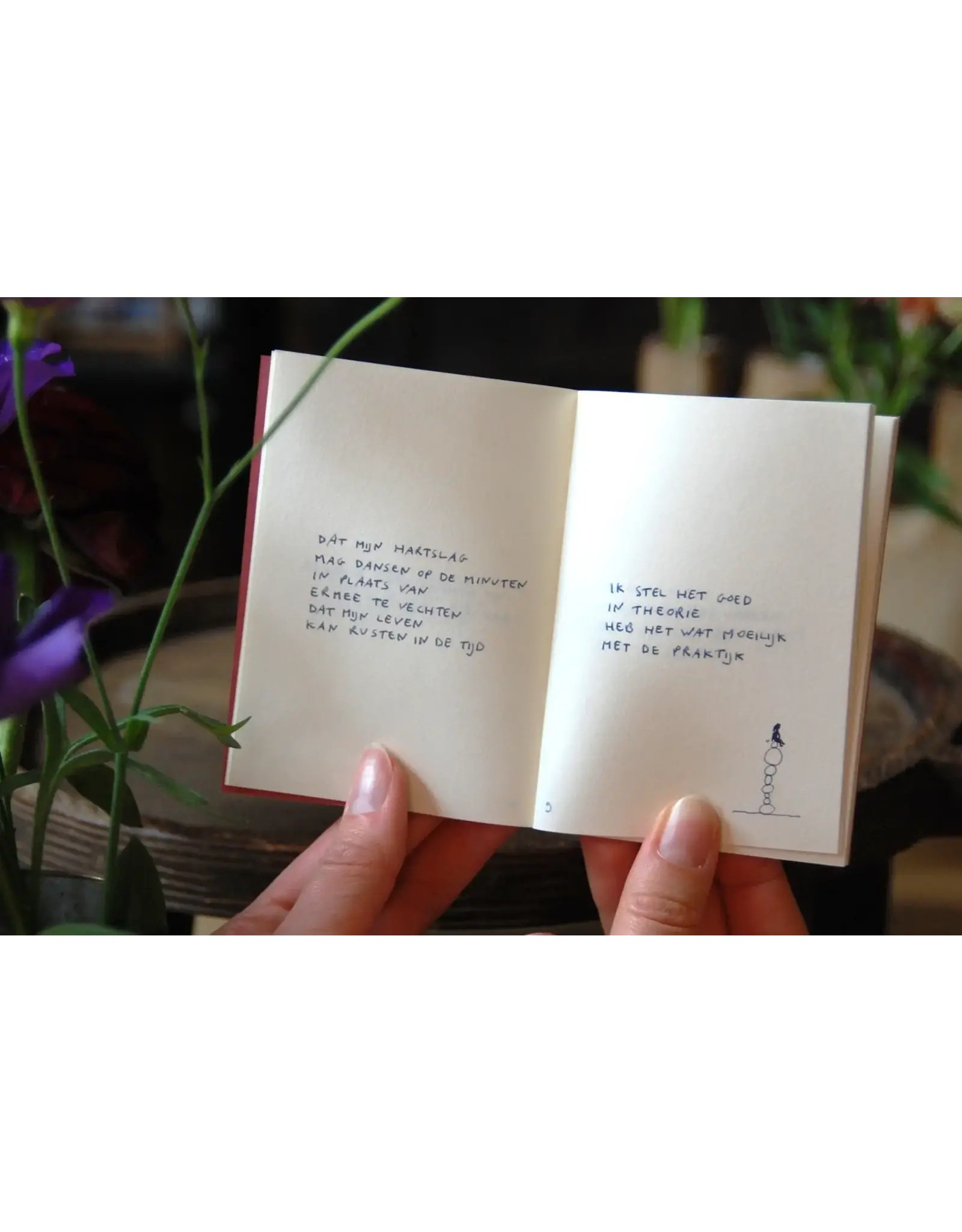 Elke lijn in dit schelpboekje is door mij getekend met mijn Parkerpen. Zowel de 47 teksten als de illustraties. Het boekje is onder andere geïnspireerd door mijn reis naar de oostkust van Ierland in 2024, met haar mooie zee, mensen en schelpjes. Tegelijkertijd is het boekje een afspiegeling van de vele notitieboekjes die ik zelf al jaren gebruik om mijn teksten in op te schrijven. En oh ja, alles is mini omdat ik al zot ben van mini sinds ik het zelf was.